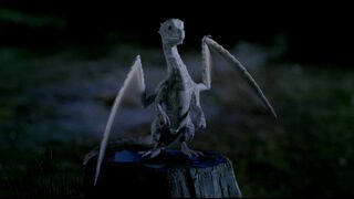 Aithusa is a dragon, with white scales, and wings with a white, almost transparent membrane. Aithusa has big, light blue eyes, four horns, short neck spikes, and tail spikes. As a newborn, Aithusa was about the size of a small bird. After three years, Aithusa appeared to be the same size as a Wyvern. How long it would take for the White Dragon to reach Kilgharrah's size is unknown.