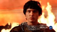 He then exists the cave transformed into his older yet ultimate form of Emrys and he journeyed to the battle. Arriving at the Plain he used his incredible powers to defeat both Aithusa and Morgana, however despite his efforts he is to late to reach Arthur who is fatally wounded by Mordred. He later on reveals his magic to Arthur and takes him to Avalon, along the way he finally kills Morgana with Arthurs sword Excalibur however he is too late to reach the Lake and a grateful Arthur dies.
