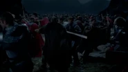 The Saxons are seen fighting at the Battle of Camlann (The Darkest Hour Part Two, Arthur's Bane Part One) and are seen as possessing an army of 50.000 men meaning they outnumbered Camelot knights 5 to 1, they were originally winning the battle but later on were defeated by a all powerful Merlin and lose the Battle to the Knight's of Camelot.
