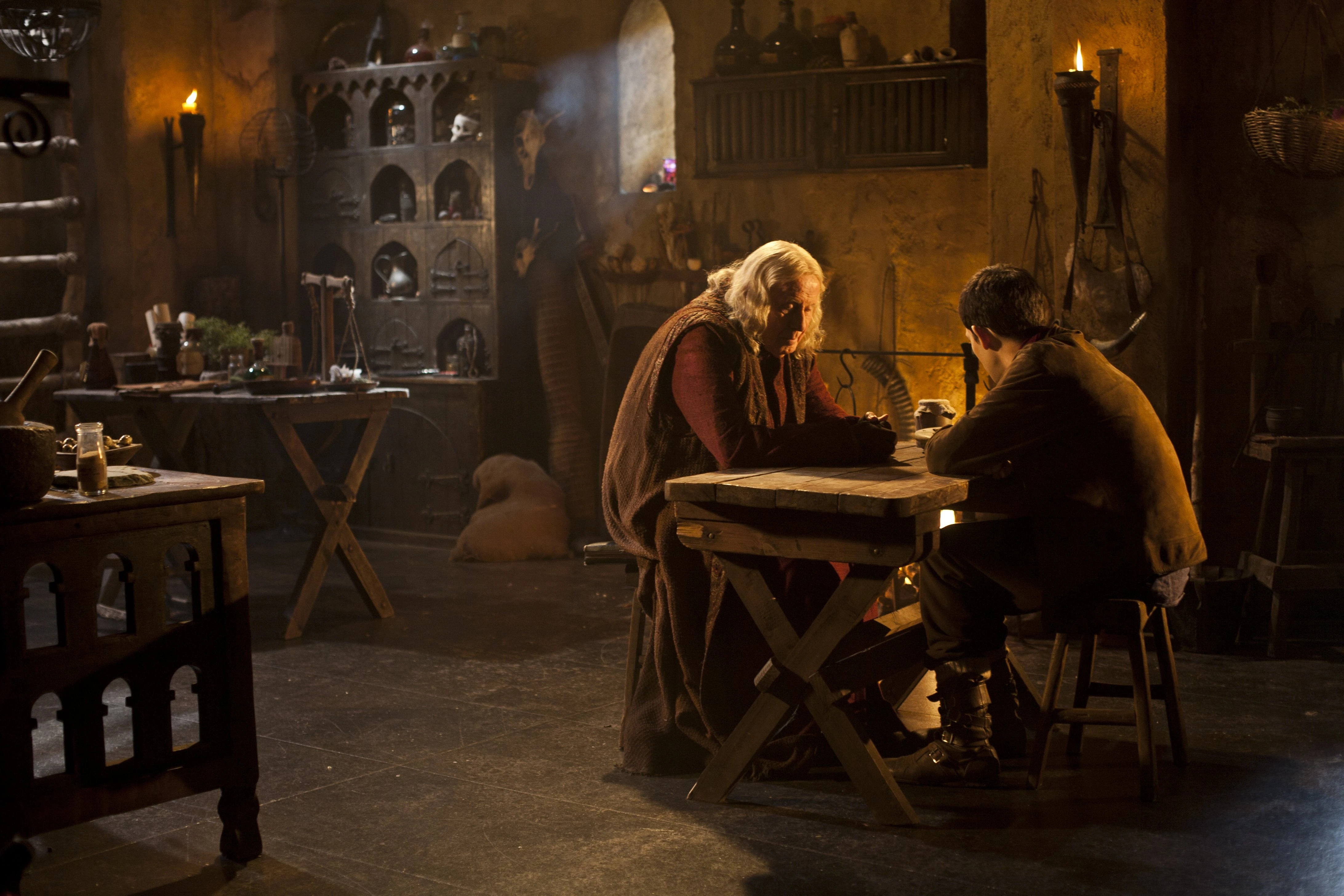 A little over a week later, Arthur and his allies set out to rescue Uther from the dungeons. Merlin and Lancelot were told to disable the warning bell, but unbeknownst to Arthur, they had also appointed themselves the task of finding and emptying the Cup of Life.