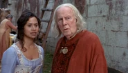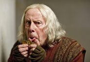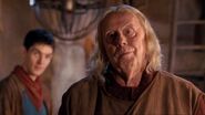Gaius' medical expertise is called upon once again when princess Mithian arrives in Camelot grievously wounded. In the physician's care Mithian soon recovers. During a privy council meeting Gaius advises caution in rescuing king Rodor. Should Odin get wind of Arthur's presence he would surely come after him. Whilst preparing medical supplies with Merlin Gaius notices that his ward is distracted. Merlin confesses to his friend that he doesn't know what to make of Mithian's story it's as if she frightened of something. The young warlock is also distrustful of Hilda there something off about the old woman. Gaius attempts to reassure Merlin that both women are merely traumatised after their horrendous ordeal. Gaius accompanies Merlin and Arthur on the rescue mission and comforts his ward again when he states that there are holes in Mithian's story. Gaius examines Hilda when she doubles over in pain and is stunned to discover that the woman is in remarkable health for one so old. When Merlin is found comatose Gaius uses magic to revive him. Merlin meditatively informs the physician that Hilda is really Morgana in disguise. When Merlin thanks his guardian for saving him Gaius admits that such using such powerful magic exacted its toll on him and hopes he won't have to performs such spell everyday. Back home Gaius and Merlin are glad that thanks to the peace treaty with Odin Albion is fast becoming a reality. Both men are worried however about Morgana's ever growing powers, Gaius hopes that the day the high priestess' magic will rival Merlin's never comes.