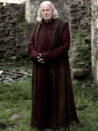 Three years later Gaius is sitting at the King Arthur's round table, all present are worried because Sir Gwaine and many others have vanished since setting out for Ismere. The matter is discussed further in Arthur's chambers. There are whispers that Morgana is currently occupying the fortress of Ismere, nonetheless Arthur means to rescue his men. Gaius warns that this might have been Morgana's plan all along to lure her brother into a trap. Arthur still isn't dissuaded but both he and Gaius agree that taking the western route (on Guinevere's suggestion) through Annis' land will take Morgana by surprise. Guinevere and Gaius are shocked to learn that her husband's party was ambushed she concludes that once again there is a traitor in Camelot. Gaius is present when Sefa is brought before the Queen and accused of treason. He is somewhat shocked when the girl is sentenced to death after admitting her guilt. Gaius pays Sefa a visit to offer her a potion that will ease her passing. The girl refuses it and begs the physician to speak on her behalf to the Queen. When Gaius states that it will be to no avail Sefa asks to address Guinevere herself to which he reluctantly agrees. When Sefa pleads her case before the Queen Gaius is there, but Guinevere will not relent and sends the desperate girl back to her cell. Gaius asks if maybe Sefa's punishment isn't a bit severe and whether she truly deserves death. Guinevere finally reveals that she has no intention of having Sefa executed she merely hopes to lure Ruadan to Camelot as he is the true threat. Gaius warns his Queen that she is playing a dangerous game but Guinevere asserts that much must be risked during times of war. Her plan works to a T and Ruadan is killed by the knights of Camelot. Guinevere is present when Gaius performs the autopsy on the druid's body. They find a Druid prayer in Ruadan's clothes. The physician states that it's a victory prayer and that even though the druids were once peaceful the great purge changed that. The druids believe that Arthur has inherited his father's hatred of magic so they feel they must fight him. Gaius also informs Guinevere of the prophecy that Arthur will die at the hands of a druid. Later in their chambers Gaius and Merin discuss recent events and whether Mordred has truly turned over a new leaf. Gaius is optimistic but Merlin remains grim and believes that Albion's great trial has begun.