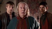 Uther trusted Gaius’ advice frequently in matters concerning magic (The Mark of Nimueh, The Poisoned Chalice), although at times, they failed to see eye to eye (Lancelot). When Edwin Muirden manipulated Uther into believing Gaius was no longer capable of his job, Gaius was removed from his post as court physician. Furthermore, Edwin threatened to tell Uther about Merlin practising magic if Gaius told Uther about his own use of magic. It was only after Edwin’s attempt to kill Uther, and Merlin stopping him from attempting to kill Gaius, that he was once again restored to his post.