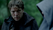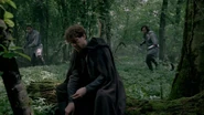 When news of this incident reached Camelot, Arthur and the Knights of the Round Table set out to bring Osgar to justice. Osgar left them a clear trail to follow and allowed Mordred to catch a glimpse of him. He then introduced himself to Gwaine and Elyan when they found him and asked to be taken to Arthur. When they tried to apprehend him instead, Osgar used his magic to throw them into a tree, but not before Gwaine stabbed him.