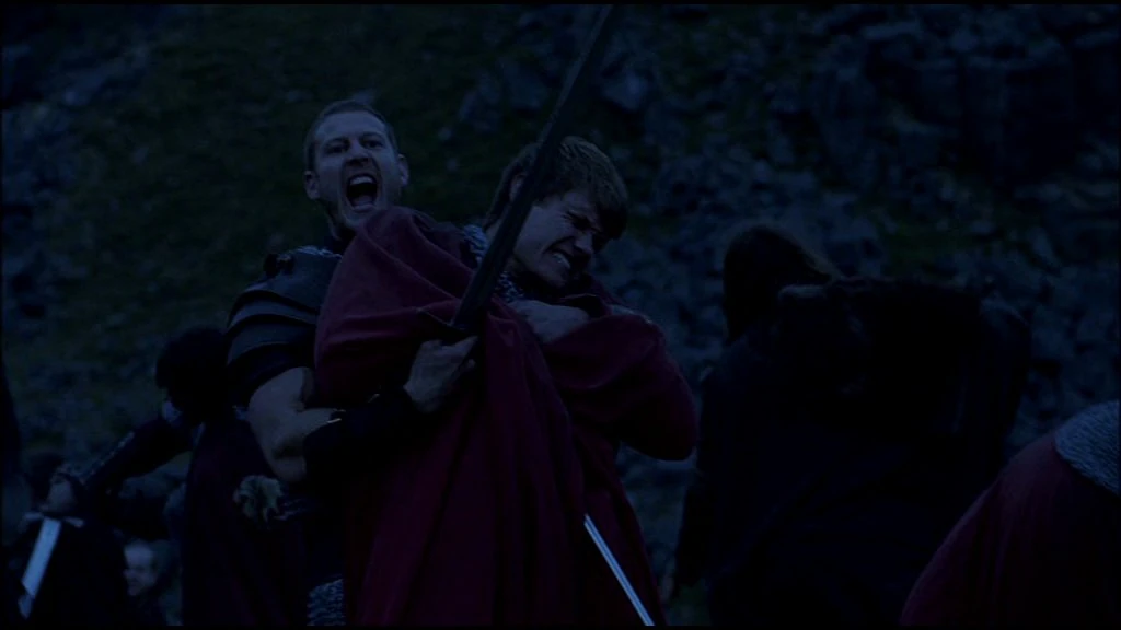 Upon arriving at Camlann, Camelot's army set up camp and took their positions. When Arthur received word during the night that Morgana intended to use a hidden path through the mountains to ambush them, Percival and Gwaine were ordered to take a patrol of men and find it. Arthur and the rest of Camelot's forces joined them after they'd located the path, and together they waited for Morgana's army to arrive.
