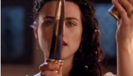That night, a feast is held for Morgana's birthday. She is presented with Arthur's present - the ornate dagger from Merlin's vision. The prince tells Merlin that he took his advice and bought Morgana something "pretty". Later, Merlin becomes worried and decides to watch Morgana, hiding outside of her chambers. Inside, Morgana receives a message from Morgause via a magic mirror - "Sister, come to the Darkling Woods at midnight, Morgause."